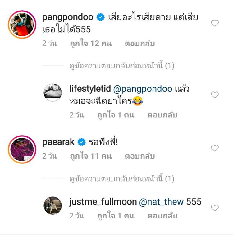 นอกจากนี้ ได้มีคนเข้ามาคอมเมนต์บอกว่า "เดี๋ยวคนไม่รู้ก็เดาอีก อาจทำให้คนดี ๆ ต้องเสียหายนะคะ เห็นพูดแต่ขวัญ" ซึ่งผู้กำกับดังก็ได้ตอบกลับว่า "ถ้าคนดี ๆ ไม่ได้ทำอะไรก็ไม่มีทางจะเสียหายหรอกคร้าบ แต่ที่แน่ ๆ ตอนนี้ทางกองถ่ายเสียหายแน่นอนคร้าบ"