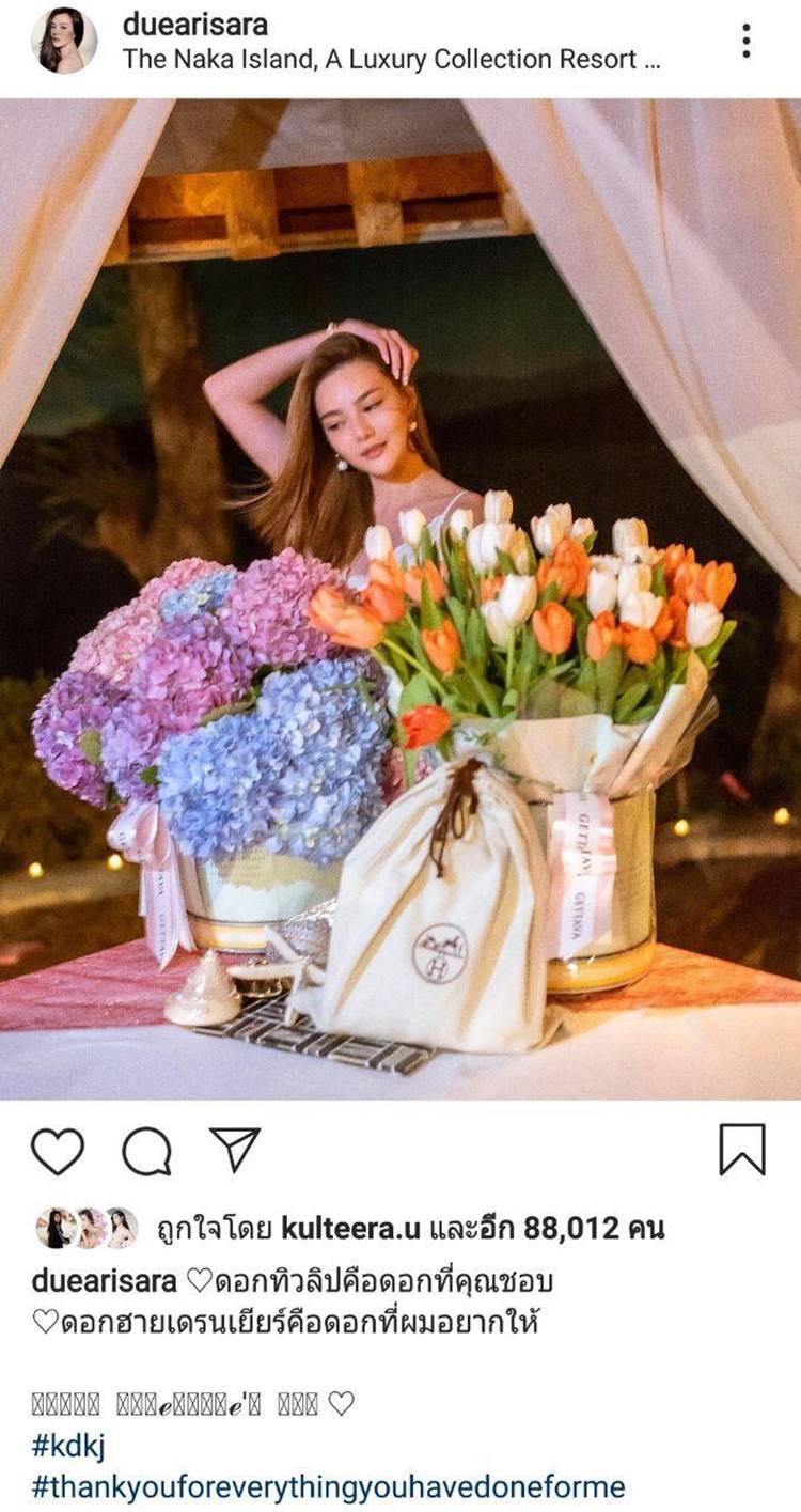 โดยแฟน ๆ ต่างจับตาที่ สาวดิว ได้เผยภาพของขวัญวันวาเลนไทน์กับดอกไม้สุดหรู ทั้งดอกทิวลิป และดอกไฮเดรนเยีย ไหนจะของขวัญสุดพิเศษของแบรนด์ Hermès พร้อมแคปชั่น