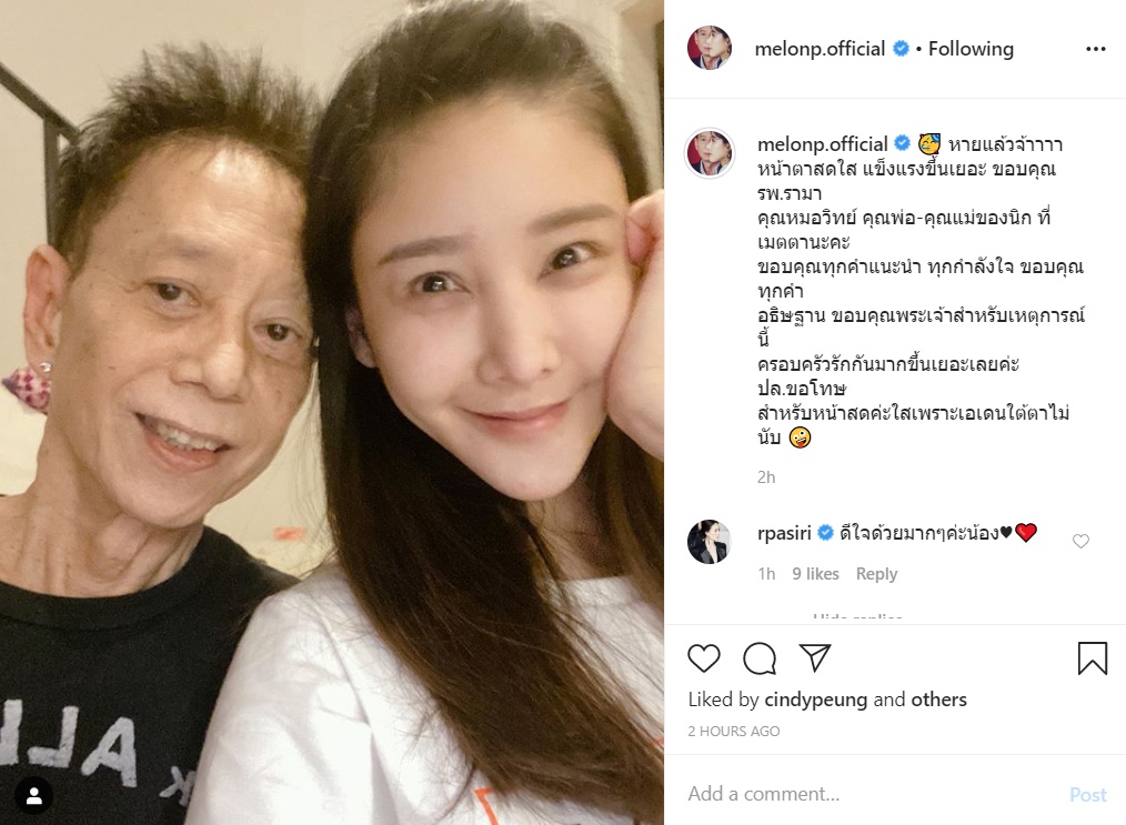 ล่าสุด (19 กุมภาพันธ์ 2563) แตงโม นิดา ก็ออกมาเผยภาพเซลฟี่คู่กับคุณพ่อโส ด้วยรอยยิ้มสดใส โชว์หน้าสด พร้อมเผยว่า คุณพ่อหายแล้ว ตอนนี้แข็งแรงขึ้นมาก ทำเอาเพื่อน ๆ ในวงการ และแฟน ๆ เข้ามาคอมเมนต์ร่วมแสดงความยินดีกันเพียบ