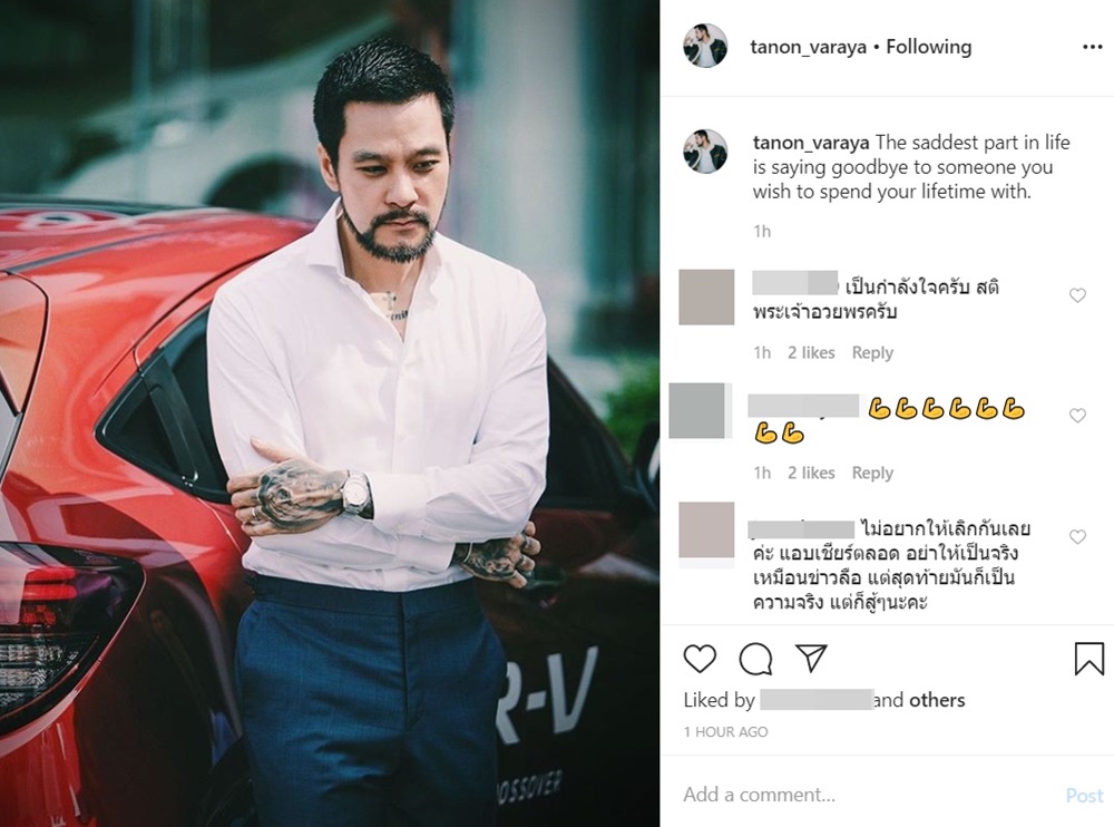 โดยล่าสุด (20 กุมภาพันธ์ 2563) ไฮโซนนท์ ธนน ก็ได้ออกมาเคลื่อนไหวผ่านอินสตาแกรม โพสต์ภาพของตัวเอง พร้อมแคปชั่นว่า "The saddest part in life is saying goodbye to someone you wish to spend your lifetime with." (ส่วนที่เศร้าที่สุดในชีวิต คือการบอกลาบางคนที่คุณหวังจะใช้ชีวิตอยู่ด้วย)