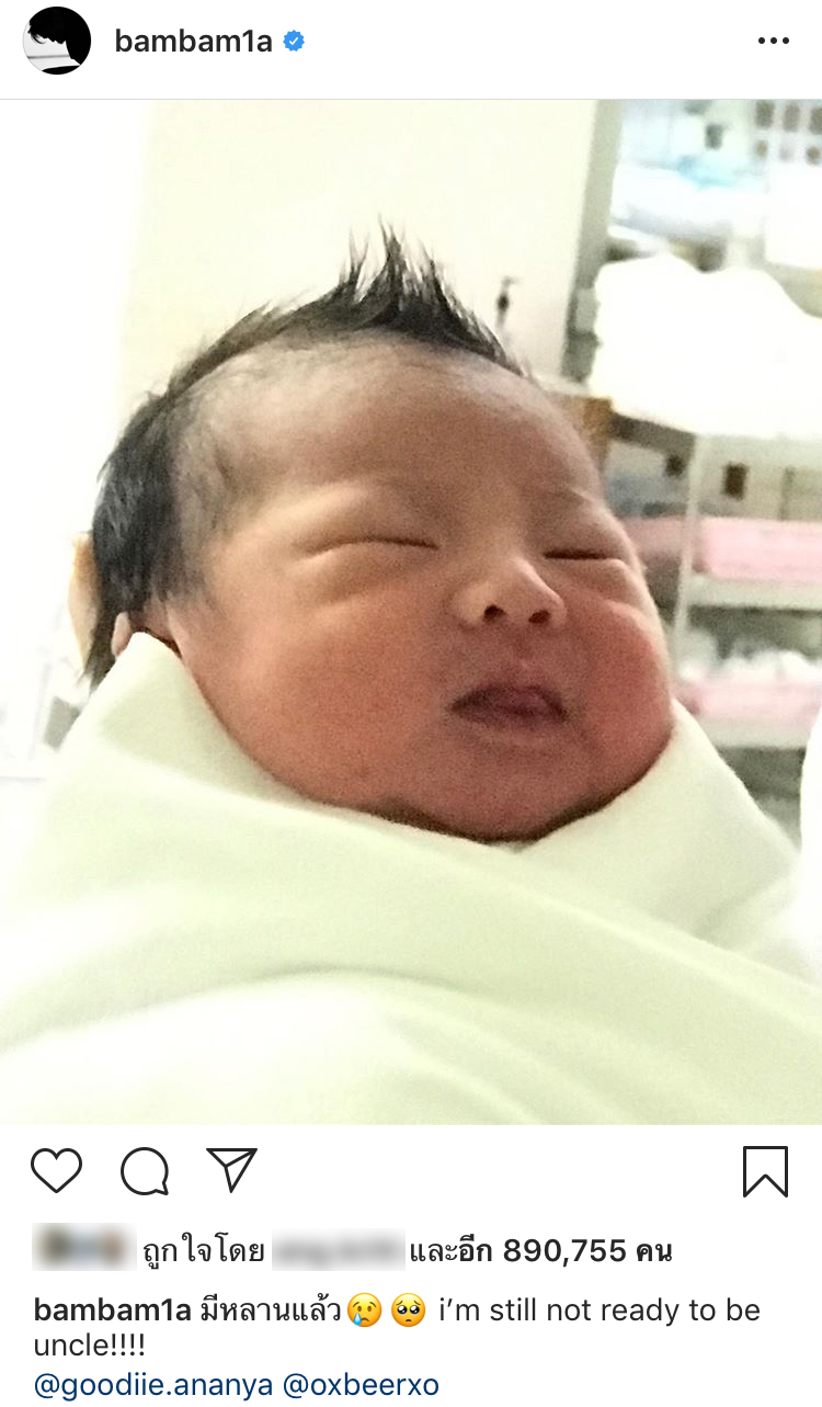 ครอบครัวกำลังมีสมาชิกเพิ่มอีก 1 คนแล้ว สำหรับครอบครัวของนักร้องหนุ่มสุดหล่อ แบมแบม GOT7 เนื่องจาก พี่เบียร์ พี่ชายของแบบแบม ภรรยาเพิ่งคลอดลูกชายคนแรก เมื่อวันที่ 21 กุมภาพันธ์ 2563 ซึ่งคลอดได้ไม่นาน แบมแบม ก็โพสต์รูปหลานลงอินสตาแกรมทันที ไม่เห่อเท่าไรเลยนะจ๊ะ