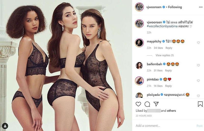 มีผลงานพรีเซ็นเตอร์และถ่ายแบบสวย ๆ ออกมาให้แฟน ๆ ได้ร้องว้าวกันอีกแล้ว สำหรับสาว วุ้นเส้น วิริฒิพา ที่ล่าสุด (25 กุมภาพันธ์ 2563) ได้ออกมาโพสต์ภาพถ่ายแบบชุดชั้นในสุดแซ่บ คอลเล็กชั่นที่เจ้าตัวร่วมงานกับแบรนด์ดัง เป็นชุดชั้นในสีดำลายลูกไม้ ที่เซ็กซี่ขยี้ใจแบบสุด ๆ