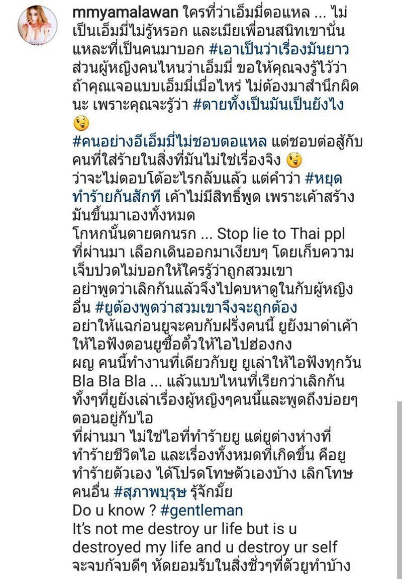 และล่าสุด (2 มีนาคม 2563) เอ็มมี่ อมลวรรณ ก็ได้ออกมาเคลื่อนไหวอีกครั้งผ่านอินสตาแกรมส่วนตัว โดยได้ตอบโต้กลับ ฮาเวิร์ด ว่า ตนไม่ได้โกหก และคนที่นำเรื่องนี้มาบอกก็คือภรรยาของเพื่อนสนิทฝ่ายชายเอง อีกอย่างตนก็ไม่ใช่คนตอแหล แต่ชอบต่อสู้กับคนที่ใส่ร้ายในสิ่งที่มันไม่ใช่เรื่องจริง ตอนแรกก็ไม่อยากตอบโต้ แต่คำว่า หยุดทำร้ายกันสักที เขาไม่มีสิทธิ์พูด เพราะเขาสร้างมันขึ้นมาเองทั้งหมด