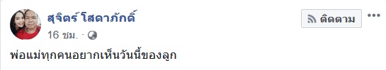 โดยในวันดังกล่าว ก็มีคุณพ่อ คุณแม่ รวมถึงคนในครอบครัว เพื่อน ๆ และครูบาอาจารย์ มาร่วมกันถ่ายภาพและยินดีกับความสำเร็จของสาวอามกันถ้วนหน้า ซึ่งคุณพ่อได้มีการโพสต์ภาพรอยยิ้มแห่งความภูมิใจลงบนเฟซบุ๊กส่วนตัว พร้อมกับเขียนข้อความว่า "พ่อแม่ทุกคนอยากเห็นวันนี้ของลูก"