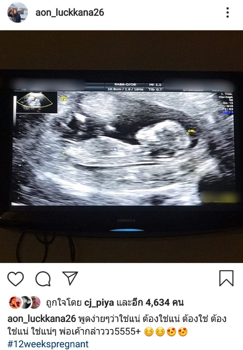 โดย อ้อน ลัคนา ได้โพสต์ภาพอัลตราซาวด์ลูกในท้องผ่านอินสตาแกรมส่วนตัวว่า ตอนนี้เธอตั้งครรภ์ลูกคนแรกอายุครรภ์ได้ 12 สัปดาห์แล้ว พร้อมข้อความว่า "พูดง่าย ๆ ว่าใช่แน่ ต้องใช่แน่ ต้องใช่ ต้องใช่แน่ ใช่แน่ ๆ พ่อเขากล่าววว 5555+ #12weekspregnant" ซึ่งก็เป็นเนื้อเพลงจากเพลง UHT..นี่แหละเพื่อน นั่นเอง งานนี้ก็มีเพื่อน ๆ ทั้งในและนอกวงการเข้ามาแสดงความยินดีกับทั้งคู่เป็นจำนวนมาก