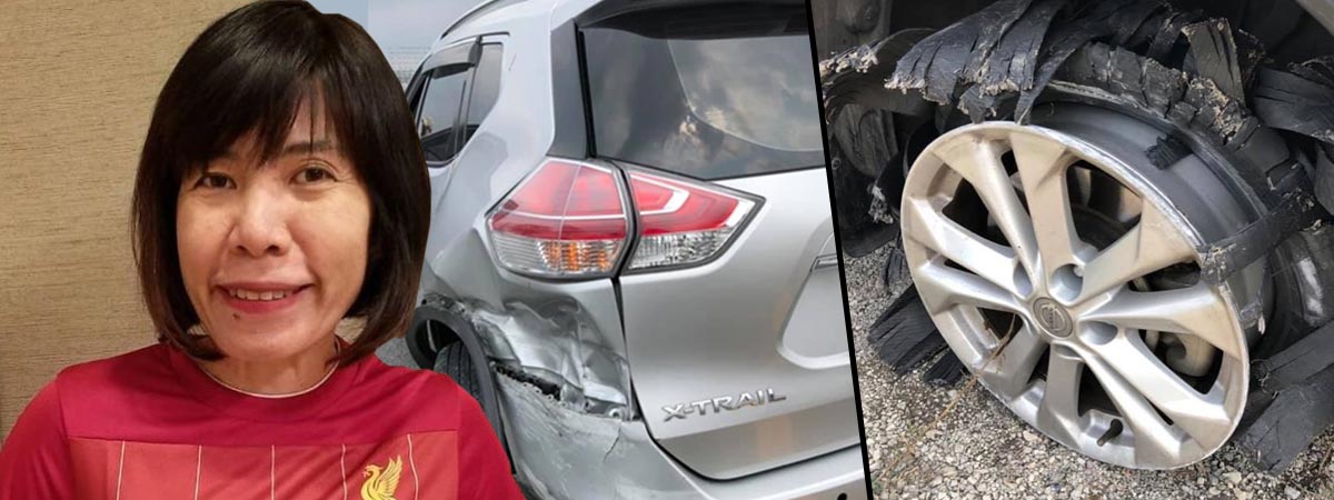 หลังจากนั้นได้ยินเสียงรถเบรกดังเอี๊ยด ก็พบว่ามีรถอีกคันพุ่งชนท้าย ซึ่งเจ้าตัวเผยว่าไม่แรงมาก จึงลงไปตรวจสอบพบว่าไม่ได้ชนกลางลำ ซึ่งคาดว่าคู่กรณีพยายามเบี่ยงออก เพื่อลดความรุนแรง ส่วนที่ตัดสินใจโพสต์ภาพหลังเกิดเหตุการณ์ไปแล้ว 3 วัน เพราะไม่อยากให้คนตกใจมาก อีกทั้งตั้งใจโพสต์เป็นอุทาหรณ์ และให้สติคนอื่นที่อาจไม่มีประสบการณ์ประสบอุบัติเหตุรถยางแตก