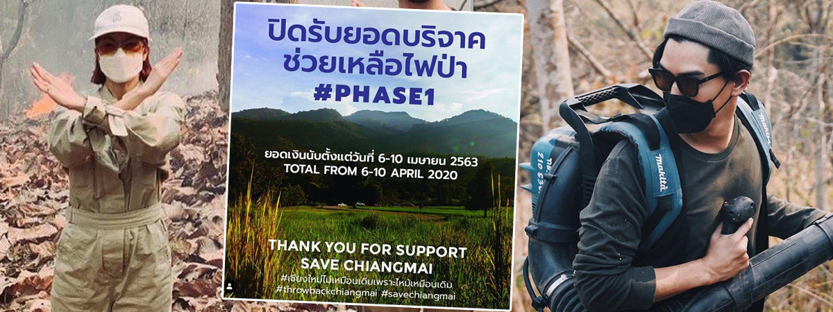เดินหน้าสู้ดับไฟป่าที่จังหวัดเชียงใหม่อย่างต่อเนื่อง สำหรับ เป๊ก เปรมณัช และ นิว นภัสสร โดยทั้งคู่มีการลงพื้นที่ไปปฏิบัติงานจริงพร้อมกับเจ้าหน้าที่ ทำให้ได้เห็นว่าวิกฤตครั้งนี้หนักหนาสาหัสขนาดไหน จึงจัดทำโครงการให้ผู้ที่ต้องการช่วยเหลือมาร่วมกันบริจาคเงิน เพื่อนำไปซื้ออุปกรณ์และสิ่งของจำเป็นในการดับไฟป่า