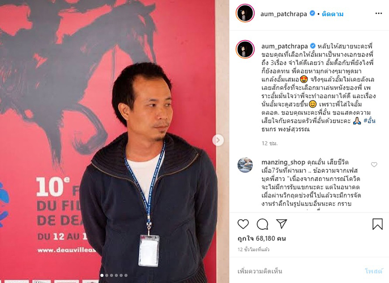 อั้ม พัชราภา โพสต์อาลัยถึงผู้กำกับ อั๋น ธนกร พงษ์สุวรรณ หลังจากไปอย่างสงบ ขอบคุณที่เลือกมาเป็นนางเอกหนังถึง 3 เรื่อง และอดทนกับเด็กดื้อคนนี้