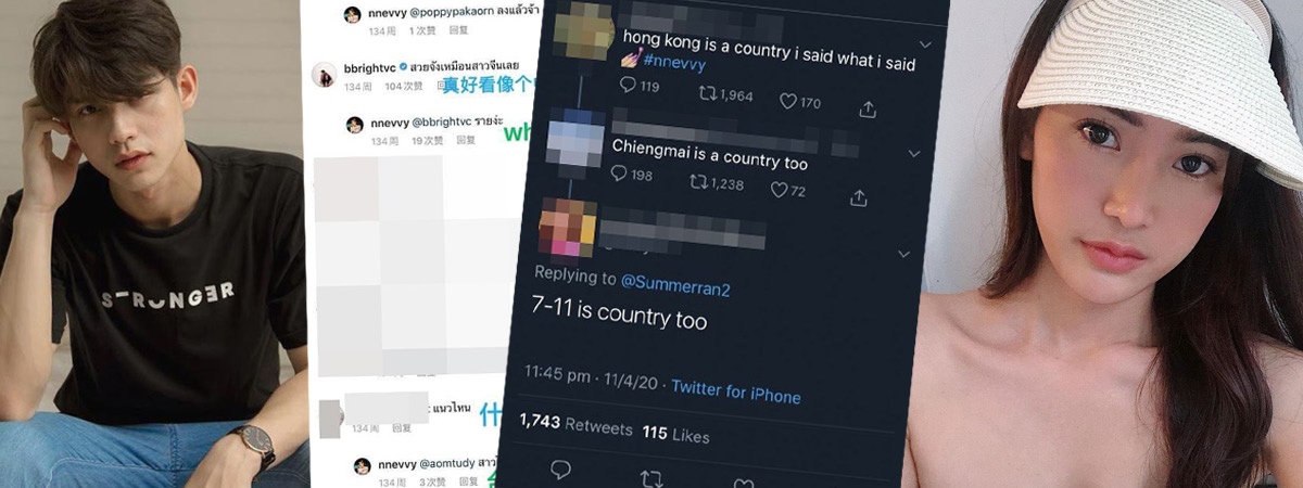 - จุดเริ่มต้นของเรื่องราว มาจาก ไบร์ท วชิรวิชญ์ นักแสดงหนุ่มจากซีรีส์ เพราะเราคู่กัน 2gether The Series ที่กำลังฮอตสุดในขณะนี้ และไม่ได้ดังแค่ที่ไทย แต่ยังดังไกลไปถึงประเทศจีน มีแฟนคลับติดตามเป็นจำนวนมาก แต่ดันเกิดประเด็นที่ทำให้แฟนคลับจีนไม่พอใจอย่างรุนแรง เมื่อ ไบร์ท ไปรีทวีตโพสต์หนึ่ง ที่มีการเรียกฮ่องกงว่าประเทศ ซึ่งเป็นประเด็นอ่อนไหวสำหรับชาวจีน ที่มองว่า ฮ่องกง รวมทั้ง ไต้หวัน เป็นส่วนหนึ่งของประเทศจีน