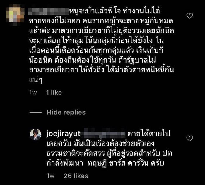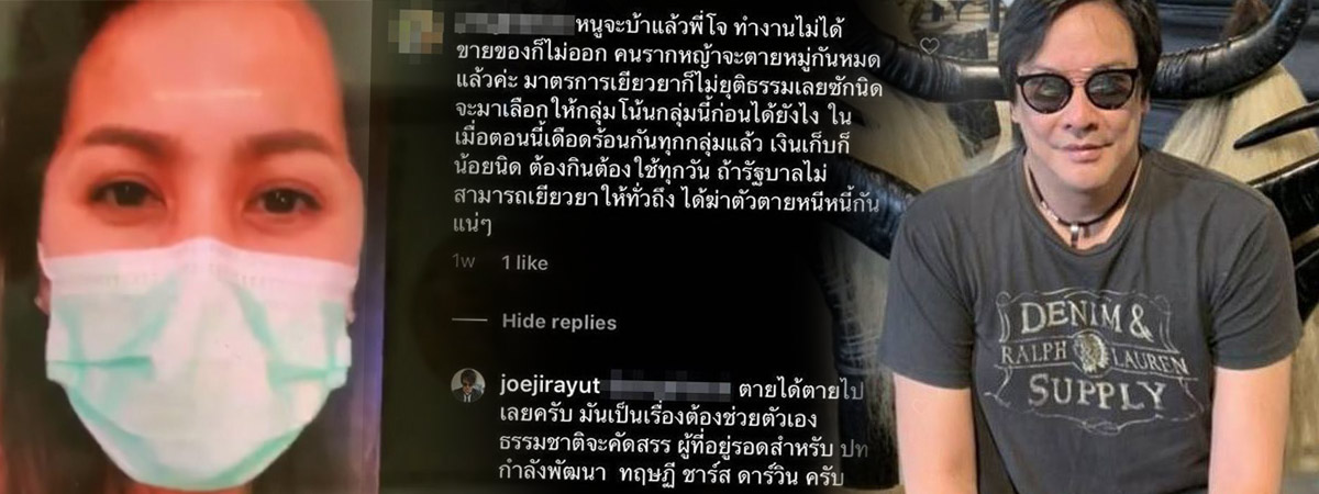 อ่านข่าว : โจ จิรายุส ตอบ ตายได้ตายไปเลย หลังคนคอมเมนต์โอดคนรากหญ้าจะตายหมู่