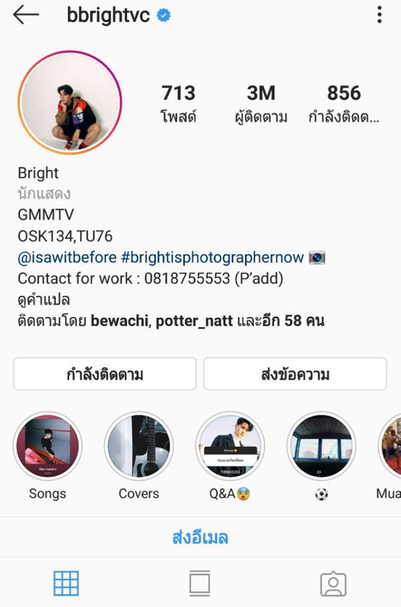 งานนี้เราก็เลยขอพาทุกคนไปส่องความหล่อของ หนุ่มไบร์ท กับหลากหลายลุคในอินสตาแกรมกับภาพที่เจ้าตัวเคยโพสต์ลงไว้ด้วย ซึ่งก็ต้องบอกเลยว่าแต่ละภาพนั้นช่างดีต่อใจจนละสายตาไม่ได้เลย เพราะทั้งหล่อ ทั้งแซ่บ ยิ้มทีละลายใจ จึงไม่แปลกใจเลยว่าทำไมตอนนี้ใคร ๆ ก็ตกหลุมรักหนุ่มหล่อคนนี้