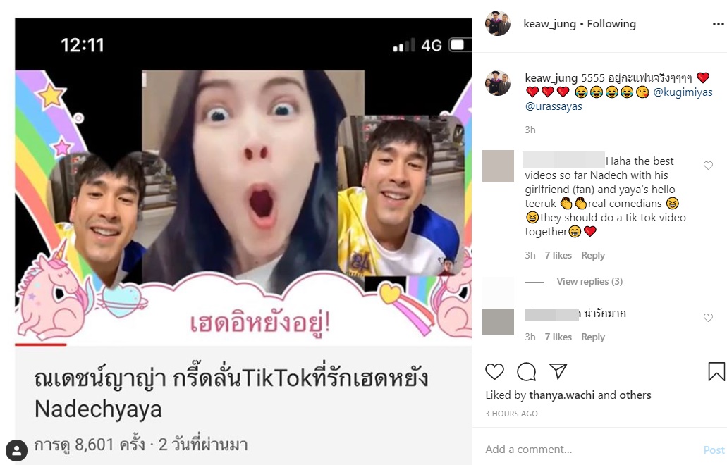 เป็นอีกหนึ่งคนดังที่ผันตัวมาเล่น TikTok ในช่วงนี้ เพื่อแก้เบื่อและสร้างความบันเทิงให้กับแฟน ๆ สำหรับนางเอกสาว ญาญ่า อุรัสยา ที่แต่ละคลิปก็มีความน่ารัก โดนใจ จนแฟน ๆ เข้าไปกดไลก์กันเพียบ