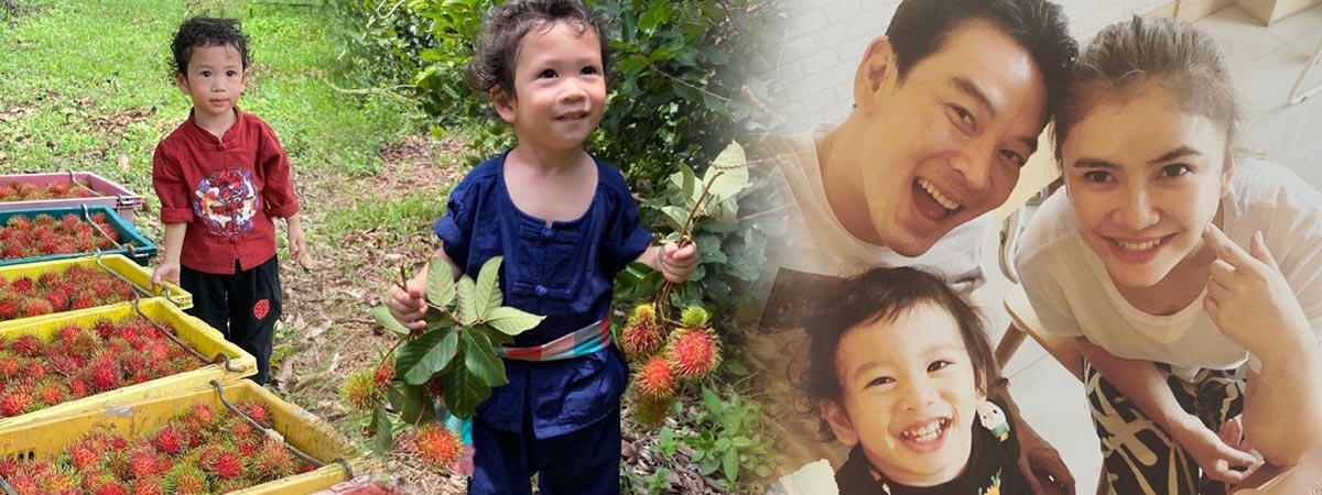 ขณะที่คุณแม่ แอน ภัททิรา ก็มีการถ่ายภาพของลูกชายมาโพสต์ลงบนอินสตาแกรมส่วนตัว พร้อมกับแซวว่า เจ้าสัวตัวน้อยลงทุนมาเดินในสวนคุมงานเองจนเหงื่อไหล แถมยังช่วยคัดผลไม้ และติดสติ๊กเกอร์ รวมถึงแพ็กของด้วย ขยันสุด ๆ จนต้องยกนิ้วให้เลย ซึ่งลูกค้าที่ได้ซื้อไปทานก็บอกเป็นเสียงเดียวกันว่า ผลไม้หวานหอมมาก แถมพ่อค้ายังน่ารักมากอีกด้วย