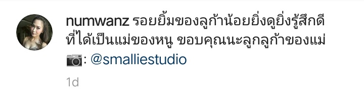 ส่วนภรรยาสาว น้ำหวาน พัสวี เขียนข้อความสั้น ๆ ว่า "รอยยิ้มของลูก้าน้อยยิ่งดูยิ่งรู้สึกดีที่ได้เป็นแม่ของหนู ขอบคุณนะลูกลูก้าของแม่"