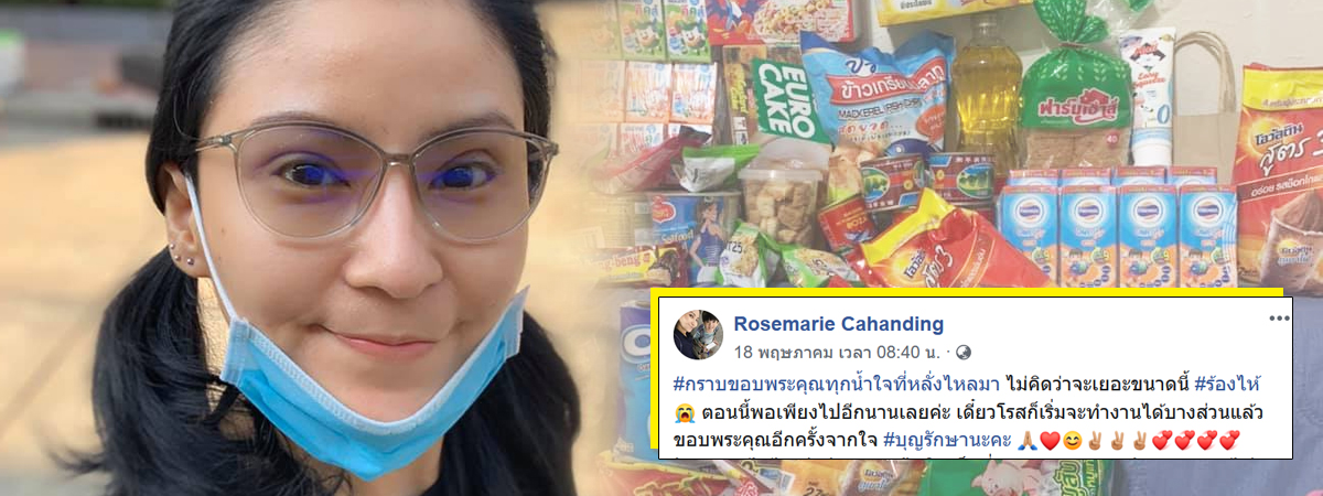 หลังจากที่อดีตนักร้องสาวชื่อดังอย่าง โรสแมรี่ คาฮันดิง ประกาศขอความช่วยเหลือในโลกโซเชียล เปิดรับบริจาคอาหารแห้งต่าง ๆ เพราะตอนนี้ตัวเองไม่มีกินแล้ว อาหารกำลังจะหมดบ้าน อีกทั้งยังมีลูกอีก 1 คนอยู่ด้วยกัน ตัวเองอดไม่เป็นไร แต่ถ้าลูกอดทนไม่ไหวจริง ๆ ต่อให้อายก็ต้องโพสต์