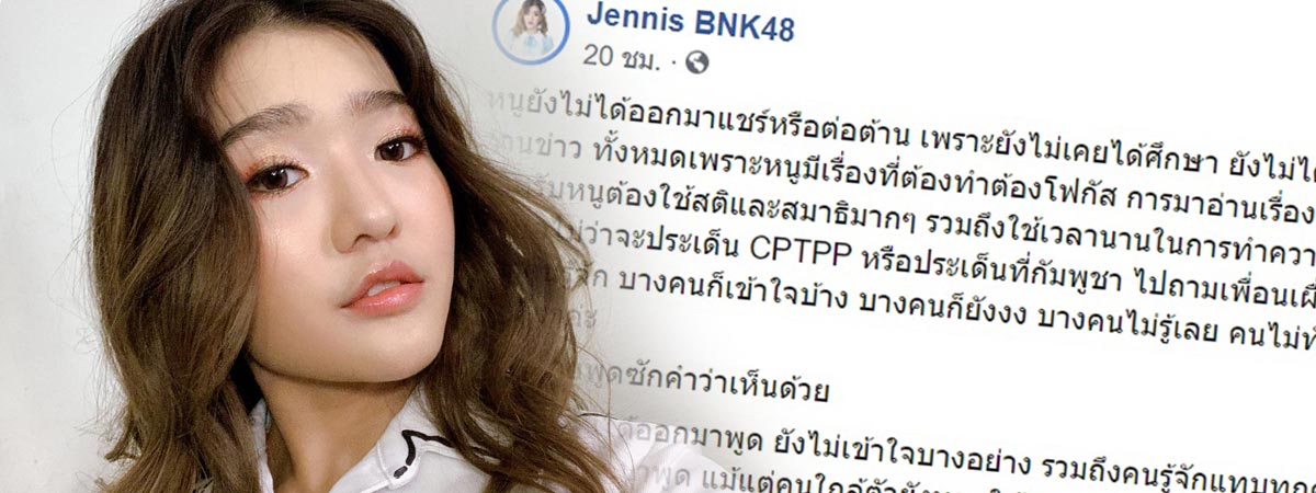 ล่าสุด (7 มิถุนายน 2563) เจนนิษฐ์ BNK48 ซึ่งเป็นอีกหนึ่งคนดังที่ถูกกดดันให้ออกมาพูดถึงประเด็นดังกล่าว ก็ได้ออกมาโพสต์ข้อความชี้แจงถึงสาเหตุที่ยังไม่ได้ออกมาแสดงความคิดเห็นเกี่ยวกับเรื่องนี้ หลังมีบางคนตัดสินว่า ที่อยู่เงียบ ๆ หรือออกมาพูดช้า เพราะอยู่อีกฝั่ง เป็นสลิ่ม ไม่สนใจชีวิตเพื่อนมนุษย์ ฯลฯ โดยข้อความทั้งหมด มีดังนี้