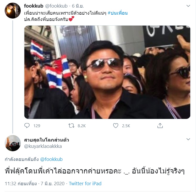 ออกมาโพสต์แซวเกี่ยวกับแฮชแท็กมาแรง #บ่นเพื่อน ด้วยการโพสต์ภาพของอดีตต้นสังกัดอย่าง คุณบอย ถกลเกียรติ พร้อมข้อความว่า "เพื่อนน่าจะเสียคนเพราะมีตัวอย่างไม่ดีแน่ ๆ #บ่นเพื่อน ป.ล.คิดถึงพี่บอยจังครับ" งานนี้เลยมีคนเมนชั่นถาม ฟลุค พชร หรือ ฟลุค เดอะสตาร์ ว่า "พี่ฟลุคโดนพี่เค้าไล่ออกจากค่ายหรอคะ ._. อันนี้น้องไม่รู้จริง ๆ"