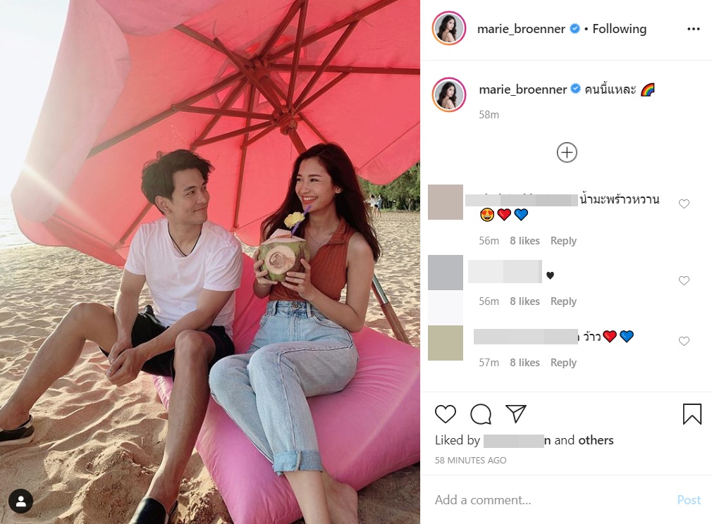ด้านสาว มารี เบรินเนอร์ ก็โพสต์ภาพคู่กับ กัน นภัทร ขณะนั่งอยู่ด้วยกันริมทะเล พร้อมแคปชั่น "คนนี้แหละ" มีความชัดเจนว่าสถานะกลับมาสวีตกันเหมือนเดิมแล้วล่ะ ^^
