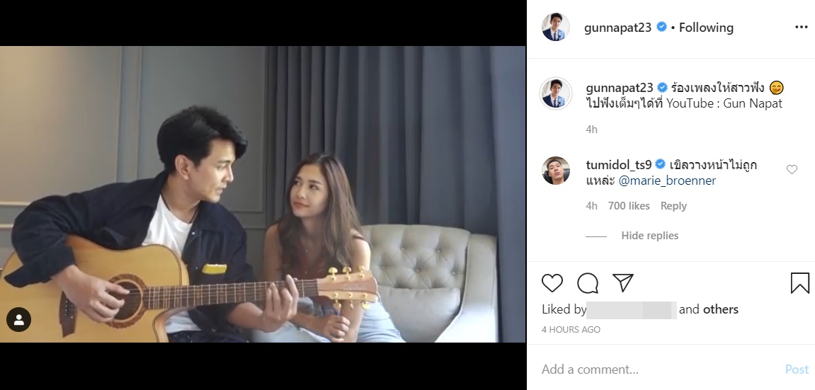 และงานนี้ดูท่าว่า กัน มารี จะกลับมาหวานยิ่งกว่าเก่า เมื่อล่าสุด (11 มิถุนายน 2563) กัน นภัทร ได้โพสต์คลิปดีดกีตาร์ ร้องเพลง "ลม" มอบให้กับ มารี เบรินเนอร์ ด้วยเนื้อเพลงจีบสาว พร้อมน้ำเสียงสุดละมุน แถมยังมีส่งสายตาหวานซึ้งให้แก่กัน ทำเอาแฟน ๆ ดูแล้วแอบเขินตามกันเลยทีเดียว