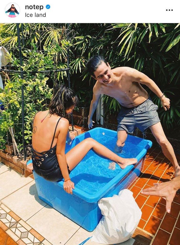เห็นแบบนี้แล้ว กลิ่นความรักลอยมาทันที เพราะเมื่อเข้าไปส่องในอินสตาแกรมของสาวนท ก็พบว่าเจ้าตัวเคยลงภาพกับหนุ่มเจเช่นกัน เป็นภาพเล่นน้ำกัน โดยมีทั้งหมด 4 คน คือ นท, เจ, จอนนี่ อันวา และเพื่อนอีกคน เป็นเกมสนุก ๆ ที่เอาน้ำแข็งใส่ลงในอ่างน้ำแล้วให้แต่ละคนลงไปท้าความหนาว แต่ละคนดูแฮปปี้สุด ๆ นอกจากนี้ เมื่อสังเกตดี ๆ จะเห็นภาพที่สาวนท นอนตักหนุ่มเจ แล้วถ่ายเซลฟี่ทุกคนอีกด้วย