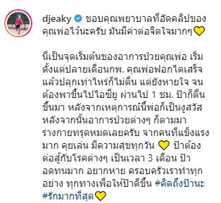 อ่านข่าว : ดีเจเอกกี้ สุดเศร้า สูญเสียคุณพ่อไปอย่างไม่มีวันกลับ พ่อเก่งที่สุดแล้วสู้กับโรคภัย