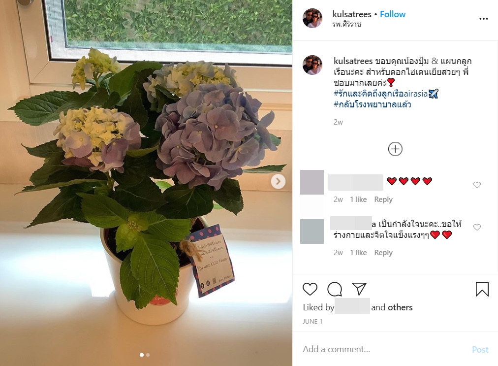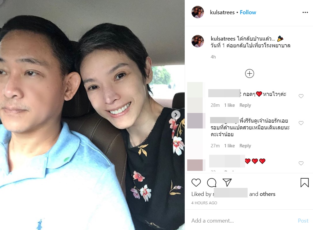 กระทั่งล่าสุด (20 มิถุนายน 2563) นิ้ง กุลสตรี ก็ได้โพสต์อัปเดตภาพล่าสุดของตัวเองลงในอินสตาแกรม พร้อมเผยว่า "ได้กลับบ้านแล้ว... วันที่ 1 ค่อยกลับไปเที่ยวโรงพยาบาล"
