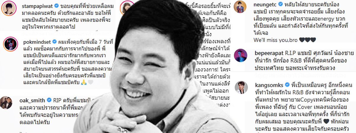 ศิลปินในวงการ ร่วมส่งข้อความอำลาอาลัย แชมป์ ศุภวัฒน์ จากไป อย่างน่าใจหาย ไม่ทันได้ร่ำลา ขอให้หลับสบาย จะเก็บทุกความทรงจำอยู่ในใจตลอดไป