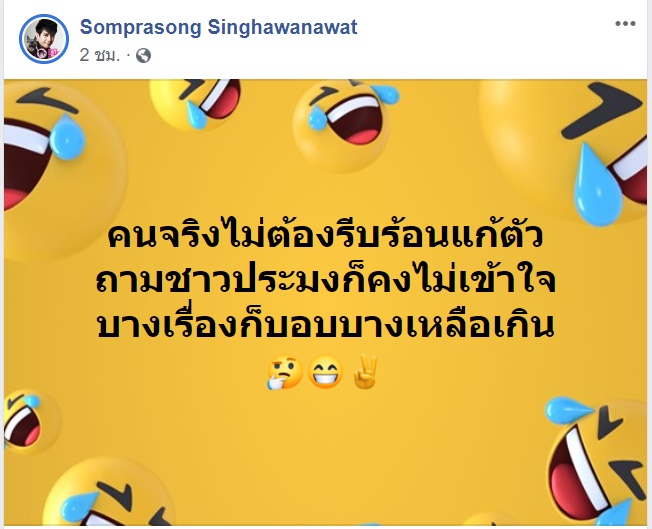 ล่าสุด ในช่วงค่ำวันที่ 23 มิถุนายน 2563 ตั้ม สมประสงค์ ก็ได้ออกมาเคลื่อนไหวแล้ว หลังมีดราม่าดังกล่าว โดยโพสต์ข้อความแบบสั้น ๆ ลงในเฟซบุ๊ก ระบุว่า "คนจริงไม่ต้องรีบร้อนแก้ตัว ถามชาวประมงก็คงไม่เข้าใจ บางเรื่องก็บอบบางเหลือเกิน"