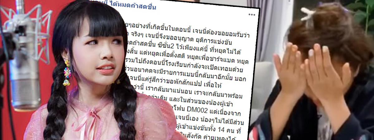 ก่อนที่ล่าสุด (30 มิถุนายน 2563) เจนนี่ ได้หมดถ้าสดชื่น จะออกมาเผยคลิปขณะพูดคุยกับน้อง ๆ ในรายการ ซึ่งทั้งเจนนี่และน้อง ๆ ต่างก็ร้องไห้ ปล่อยโฮออกมา พร้อมประกาศว่า ขอยุติการแข่งขันรายการ "เส้นทางสู่บ้านได้หมดถ้าสดชื่น ซีซั่น 2" ไว้เพียงแค่นี้ ที่หยุดไม่ได้ยอมแพ้หรืออ่อนแอ แต่หยุดเพื่อตั้งสติ เพื่อชาร์จแบตฯ ส่วนอนาคต จะมีรายการแบบนี้กลับมาอีกแน่นอน