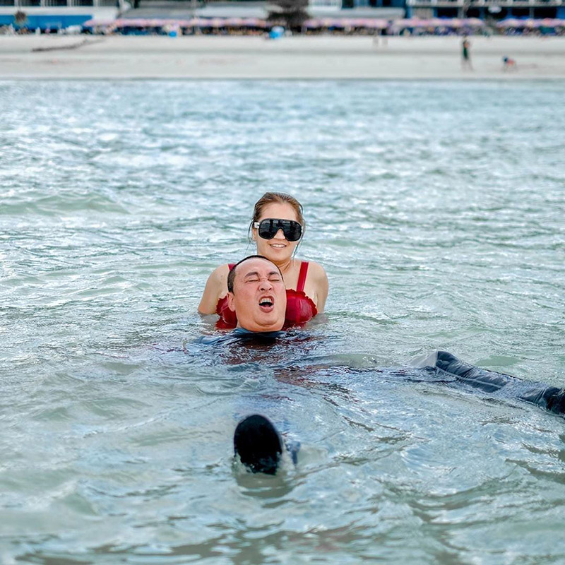 ล่าสุด เปิ้ล นาคร ขอแอบลูก ๆ ไปสวีตกับ คุณแม่จูนสองคน โดยเปิ้ล ได้ลงภาพในอินสตาแกรม เป็นภาพชุดที่ดู (เหมือนว่าจะ) หวาน ให้คุณศรีภรรยาขี่คอเล่นน้ำทะเล แต่เมื่อเลื่อนภาพไปดูถึงภาพสุดท้าย กลายเป็นพากันหงายหลังลงน้ำ สีหน้าของเปิ้ลนั้น บ่งบอกอารมณ์แบบสุด ๆ