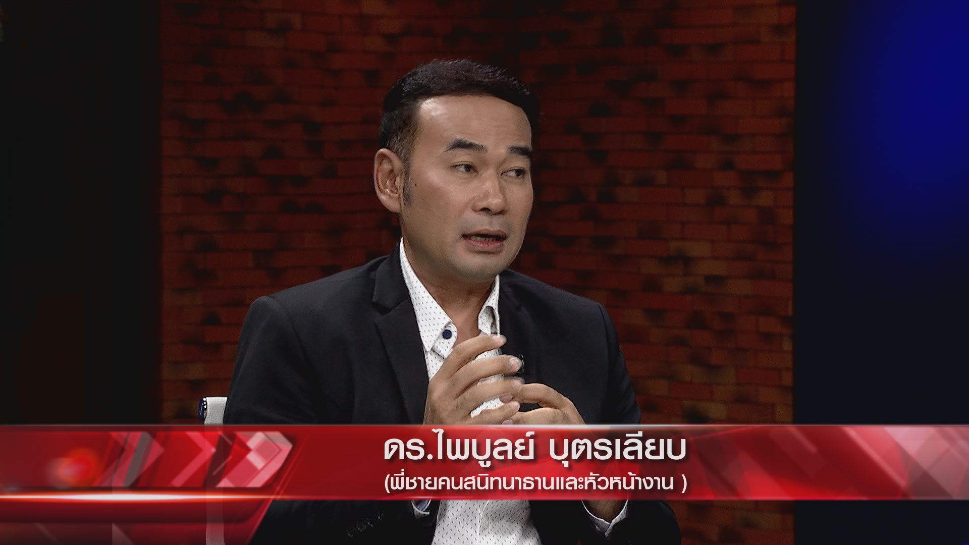 ดร.ไพบูลย์ : ไม่กังวลเลย เพราะไม่มีอะไรน่ากังวล เขาไม่อยู่ในจุดที่ทำให้องค์กรเราเสียหาย เรารับปากกับทางเพื่อนว่าจะเอาไปดูแล เพราะเขาอยากกลับเนื้อกลับตัว เขาไม่มีที่ไป ไม่มีทางไป เราก็ให้โอกาส