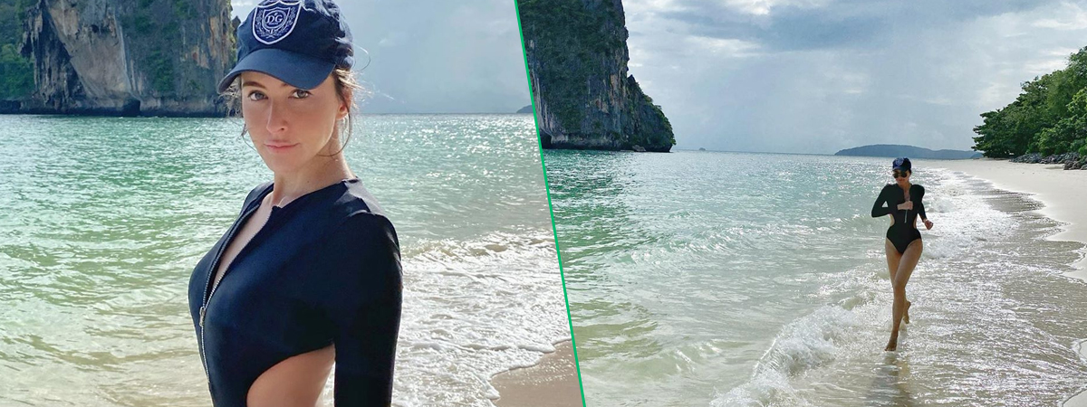 นอกจากนี้แล้ว เจ้าตัวยังโพสต์ภาพขณะวิ่งริมหาด พร้อมแคปชั่นว่า "Little Morning Run, Have the whole island for myself " หรือแปลได้ว่า "วิ่งจ็อกกิ้งเล็ก ๆ ยามเช้า เกาะนี้ทั้งเกาะเป็นเป็นของฉันค่ะ"