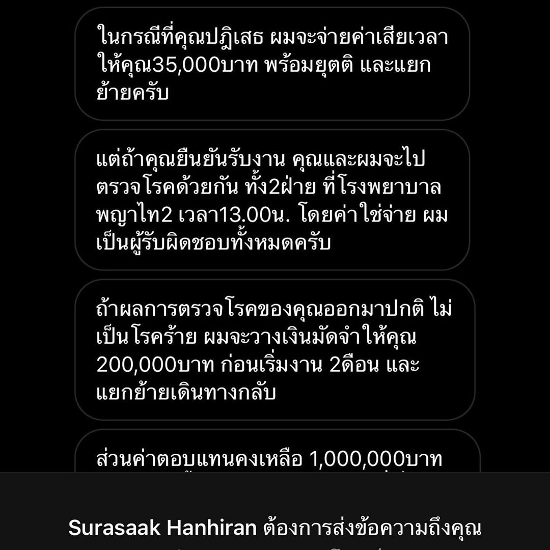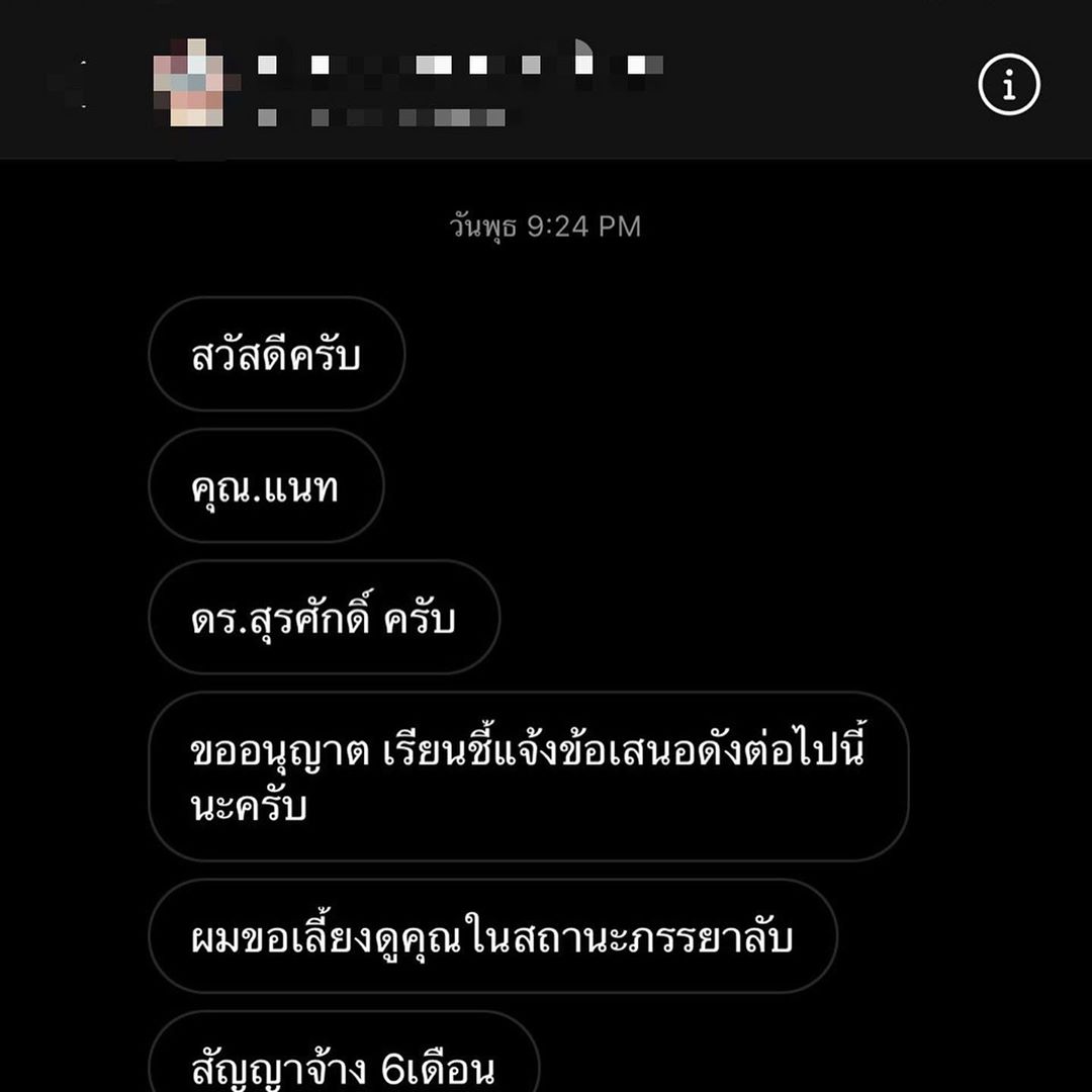 ทำเอานักแสดงสาว แนท ณัฐชา ถึงกับปรี๊ดแตก หลังถูกบุคคลนิรนามทักแชตยื่นข้อเสนอให้เป็นภรรยาลับ พร้อมมีค่าตอบแทนให้ เดือนละ 1.2 ล้าน ทั้ง ๆ ที่เจ้าตัวกำลังตั้งท้องลูกคนแรกได้ 7 เดือน และเมื่อเธอออกมาแฉ ชายคนดังกล่าวก็ไม่หยุดตื้อ แถมยังคุกคามหนัก ถึงขั้นข่มขู่จะอุ้ม เป๊ก รัฐภูมิ สามีของเธอ จนสร้างความกังวลให้กับตนเองและครอบครัว