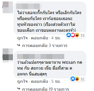 ทำเอาเหล่าชาวเน็ต ขาเมาท์ ขาเผือก เข้ามาเปิดคำใบ้เด็ดกันเพียบ พร้อมบอกว่า หากเรื่องนี้เป็นเรื่องจริงก็อดสงสารอดีตแฟนนอกวงการของพระเอกหนุ่มไม่ได้จริง ๆ อย่างไรก็ตาม ก็มีอีกด้านบอกว่า เรื่องนี้เป็นเรื่องส่วนตัว จะรักใคร เลิกกับใคร ก็ยังติดตามผลงานเหมือนเดิม