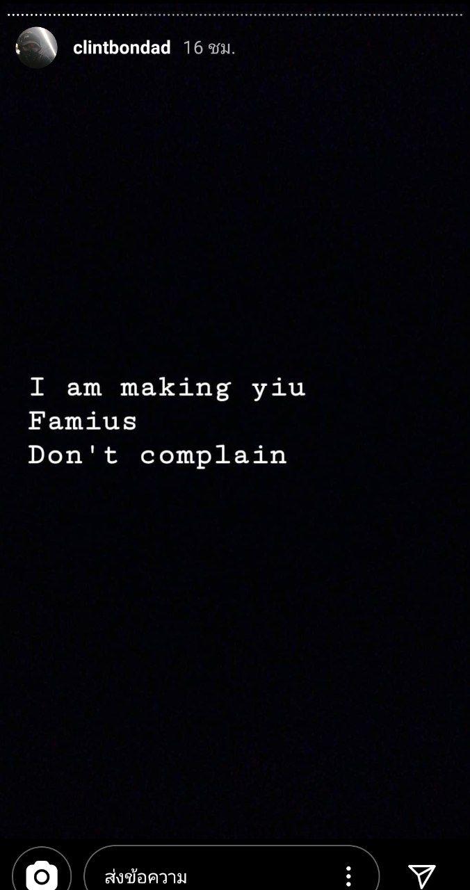 โดยล่าสุด คลินต์ บอนแดด ได้ตกเป็นประเด็นร้อน หลังโพสต์ IG Story แบบรัว ๆ ซึ่งบางข้อความก็ทำเอาคนจับตาว่าเจตนาพาดพิงแฟนเก่าหรือเปล่า บ้างก็เป็นห่วงว่าเจ้าตัวจะป่วยหรือไม่ ซึ่งก็มีบางคนที่เข้าไปคอมเมนต์ถึงนายแบบหนุ่มใน IG ของ แอน JKN จนเจ้าตัวออกมาโพสต์ข้อความแซ่บ ๆ ว่า