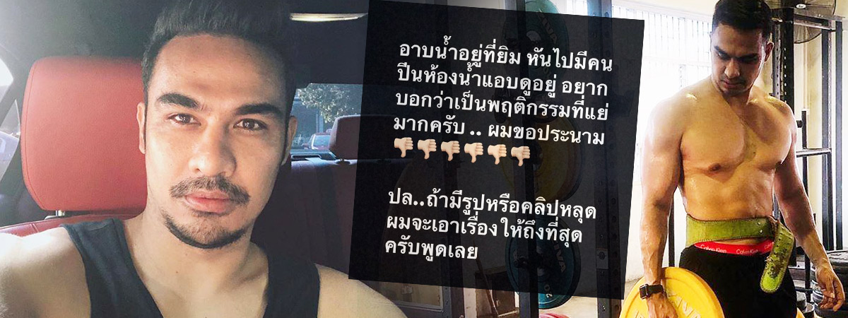 โดยโพสต์ภาพข้อความว่า "อาบน้ำอยู่ที่ยิม หันไปมีคนปีนห้องน้ำแอบดูอยู่ อยากบอกว่าเป็นพฤติกรรมที่แย่มากครับ.. ผมขอประณาม ปล. ถ้ามีรูปหรือคลิปหลุด ผมจะเอาเรื่องให้ถึงที่สุดครับพูดเลย" และแคปชั่นระบุว่า เราควรช่วยกันทำให้สังคมนี้น่าอยู่ ไม่ใช่แย่ลง ยิมที่นี่เป็นเหมือนบ้าน เหมือนที่พี่น้องมาเจอกัน คุณไม่ควรทำแบบนี้