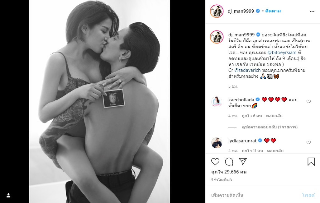 ทำเอาอากาศร้อนผ่าว ๆ ขึ้นมาทันที เมื่อล่าสุด (29 กรกฎาคม 2563) ดีเจแมน พัฒนพล ได้เผยภาพคู่ภรรยา ใบเตย อาร์สยาม ที่ต้องบอกว่าแซ่บนัวยิ่งกว่าอาหารจานไหน ๆ เพราะทั้งคู่มาเสิร์ฟความเผ็ดร้อนด้วยท่าโพสแบบขาเกี่ยวเอวจูบปากดูดดื่ม พร้อมโชว์รูปลูกสาว น้องเวทย์มน ที่ใกล้จะออกมาลืมตาดูโลกในเดือนสิงหาคมนี้ ทำเอาคนแตกตื่นไม่รู้จะโฟกัสอะไรก่อนดี