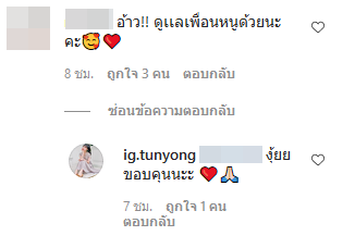 ทำเอาเพื่อน ๆ และแฟนคลับเข้ามาร่วมอวยพรวันเกิดกันยกใหญ่ พร้อมคอมเมนต์แซวด้วยว่า เปิดตัวแล้วเหรอ เหม็นความรักมาก เพื่อน ๆ ของฝ่ายหญิงยังบอกว่า ฝากดูแลเพื่อนหนูด้วย ซึ่ง ตันหยง ก็ได้เข้าไปคอมเมนต์ขอบคุณแทบทุกคอมเมนต์