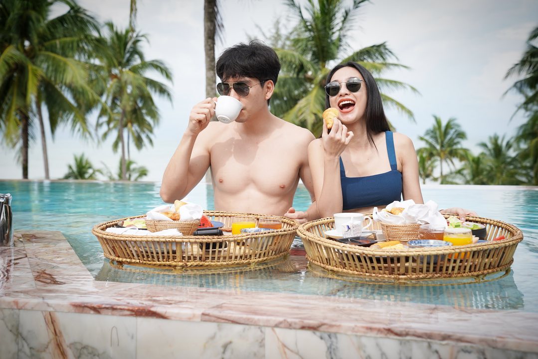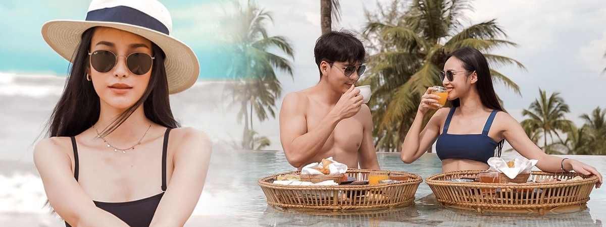 อย่างไรก็ตาม คงไม่มีอะไรจะฟินไปกว่าภาพคู่น่ารัก ๆ ของนิวและนาว ขณะทานอาหารเช้าอยู่ในสระว่ายน้ำด้วยกัน ท่ามกลางบรรยากาศที่แสนสดใส บวกกับความฮอตของทั้งคู่ในชุดว่ายน้ำแซ่บ ๆ ก็ทำให้ทริปนี้ดูสดชื่นแบบสุด ๆ