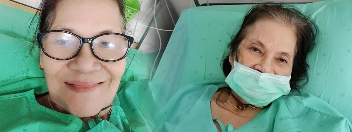 ทั้งนี้ ป้าแมว ได้เปิดเผยผ่าน ทีมข่าวไนน์เอ็นเตอร์เทน ว่า ตอนนี้ยังรักษาตัวอยู่ที่โรงพยาบาล ซึ่งจริง ๆ มีกำหนดออกเมื่อวันที่ 10 สิงหาคม ที่ผ่านมา แต่ผลเอกซเรย์ปอดออกมายังไม่ดีขึ้น คุณหมอจึงให้อยู่รักษาตัวก่อน ส่วนงานในวงการบันเทิงก็ยังพอมีบ้าง รับงานอยู่ปกติแต่ไม่ใช่ละครยาวแบบที่ผ่านมาแล้ว พร้อมทั้งขอบคุณพี่น้องในวงการบันเทิงที่น่ารัก โอนเงินมาช่วยเหลือในยามยาก
