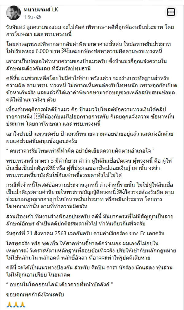 ขอบคุณข้อมูลจาก เฟซบุ๊ก ทนายเจมส์ LK