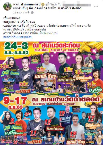 ล่าสุด (22 สิงหาคม 2563) เฟซบุ๊ก หจก. ปาล์มทองกรุ๊ป ของผู้จัดคอนเสิร์ตในงานสารทเดือนสิบ(ส่งตายาย) จัดที่สนามข้างวัดถ้ำตลอด ต.เขาแดง อ.สะบ้าย้อย จ.สงขลา ซึ่งตามกำหนดการเดิม เจนนี่-ลิลลี่ ได้หมดถ้าสดชื่น จะขึ้นแสดงในวันที่ 13 กันยายน 2563 แต่ก็มีหลายคอมเมนต์เข้ามาแสดงความคิดเห็นไม่สนับสนุนเจนนี่ และเรียกร้องให้ผู้จัดถอด เจนนี่ - ลิลลี่ออก