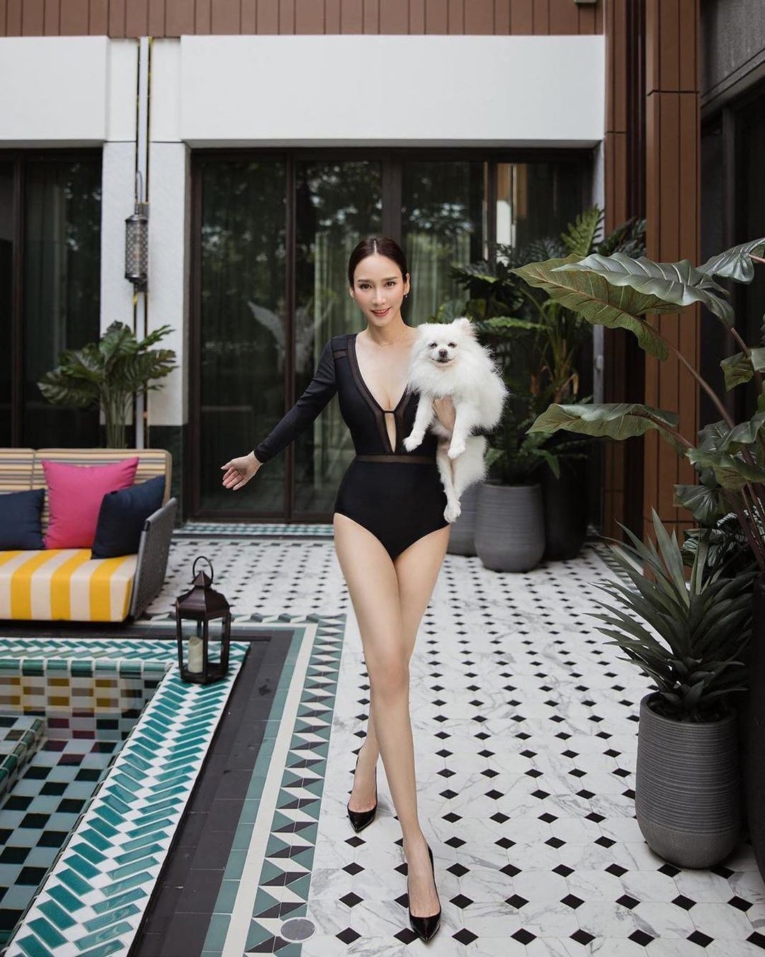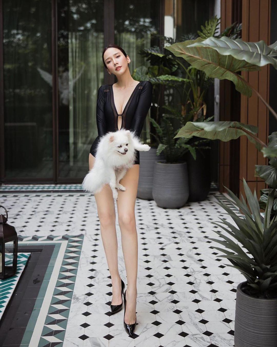 ทำเอา IG แทบลุกเป็นไฟ ! หลังจากซุปตาร์สาว อั้ม พัชราภา ออกมาเผยแฟชั่นอยู่บ้านสุดแซ่บ สวมชุดว่ายน้ำสีดำ แหวกอกขาว พร้อมใส่รองเท้าส้นสูง อุ้มน้องหมามาโพสถ่ายรูปชิล ๆ โชว์ขายาวเรียวสวยสะดุดตา