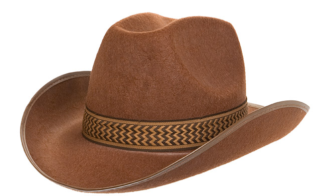 เครื่องแต่งกายที่ขาดไม่ได้สำหรับเหล่าคาวบอยนั่นก็คือ หมวกทรงสูงปีกกว้างที่ใช้สวมใส่เพื่อป้องกันแสงแดดเวลาขี่ม้า ซึ่งถือเป็นเอกลักษณ์ประจำตัวที่โดดเด่นไม่น้อยเลยทีเดียว โดยมีให้เลือกหลายแบบ ไม่ว่าจะเป็น แบบสาน แบบหนัง และแบบสักหลาด