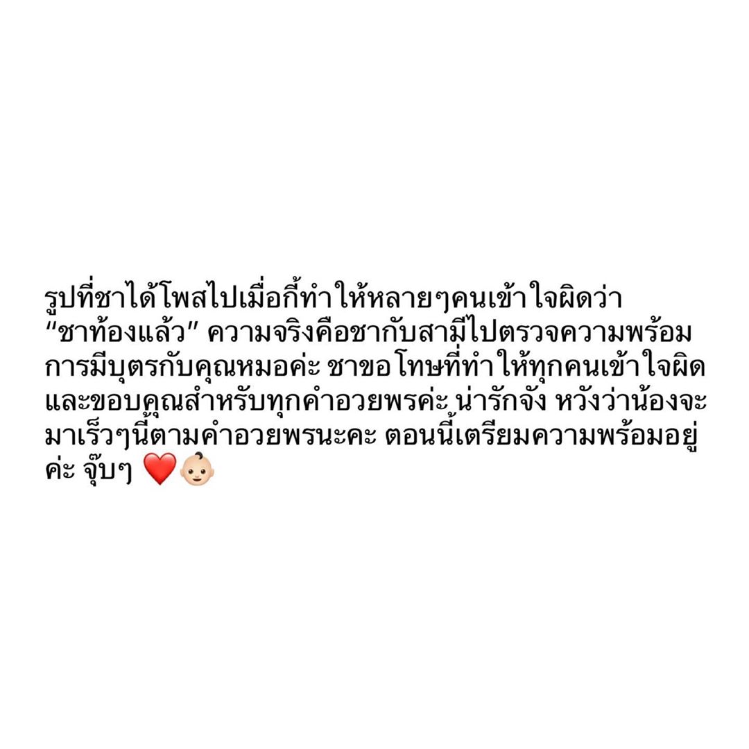 ล่าสุด (26 สิงหาคม 2563) น้ำชา ชีรณัฐ ได้โพสต์ชี้แจงหลังคนเข้าใจผิด โดยระบุว่า "รูปที่ชาได้โพสต์ไปเมื่อกี้ทำให้หลาย ๆ คนเข้าใจผิดว่า "ชาท้องแล้ว" ความจริงคือชากับสามีไปตรวจความพร้อมการมีบุตรกับคุณหมอค่ะ ชาขอโทษที่ทำให้ทุกคนเข้าใจผิดและขอบคุณสำหรับทุกคำอวยพรค่ะ น่ารักจัง หวังว่าน้องจะมาเร็ว ๆ นี้ตามคำอวยพรนะคะ ตอนนี้เตรียมความพร้อมอยู่ค่ะ จุ๊บ ๆ"