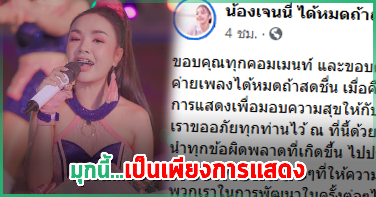 อย่างไรก็ตาม ล่าสุด (2 กันยายน 2563) เจนนี่ ได้ออกมาชี้แจงผ่านเพจเฟซบุ๊ก น้องเจนนี่ ได้หมดถ้าสดชื่น ว่า ทุกอย่างที่เกิดขึ้นด้านหน้าเวทีเป็นเพียงการแสดงเพื่อมอบความสุขให้กับพี่น้องชาวสงขลา ส่วนข้อผิดพลาดที่เกิดขึ้นก็พร้อมยอมรับและขอโทษ และจะนำทุกข้อผิดพลาดที่เกิดขึ้นไปปรับปรุงแก้ไข พัฒนาให้ดีขึ้นไป