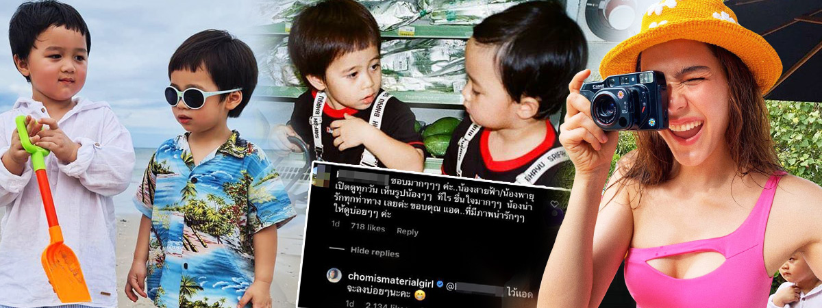 และนอกจากภาพเริด ๆ ของ สาวชมพู่ แล้ว ช่วงหลังมานี้ ภาพของลูกชายฝาแฝด น้องสายฟ้า น้องพายุ ก็ได้รับความสนใจจากแฟน ๆ เป็นจำนวนมากเช่นเดียวกัน จนได้รับการกดไลก์รัว ๆ เป็นแสนครั้ง เพราะความน่ารัก ร่าเริงของน้อง ๆ