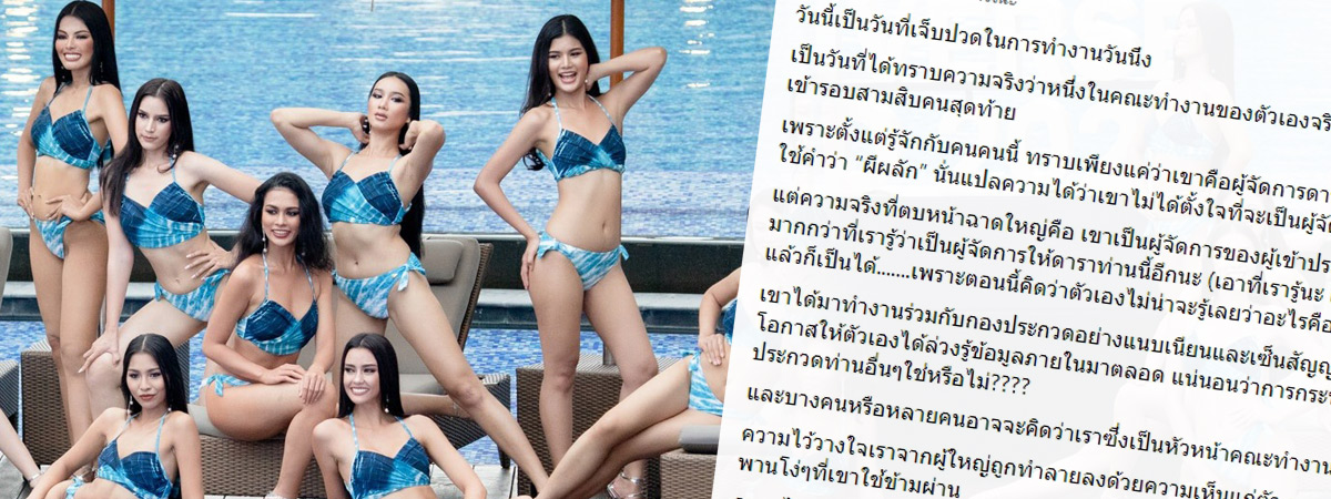 อั้ม จรีลักษณ์ เผยข้อมูลว่า ผู้จัดการคนนี้ มีฉายาว่า #ผู้จัดการผีผลัก ตอนแรกรู้ว่าเป็นแค่ผู้จัดการดารารายหนึ่ง ก่อนเพิ่งมารู้ทีหลังว่า เป็นผู้จัดการของนางงามรายนี้มานานถึง 2 ปี กระทั่งนางงามมาลงประกวด MUT ปีนี้ พร้อมกับที่ผู้จัดการรายนี้ ก็มาเซ็นสัญญาร่วมทำงานกับกองประกวด รู้ข้อมูลภายในตลอด ทำให้ไม่เป็นธรรมกับนางงามคนอื่น ๆ พร้อมติดแฮชแท็ก #มิจฉาชีพ2020
