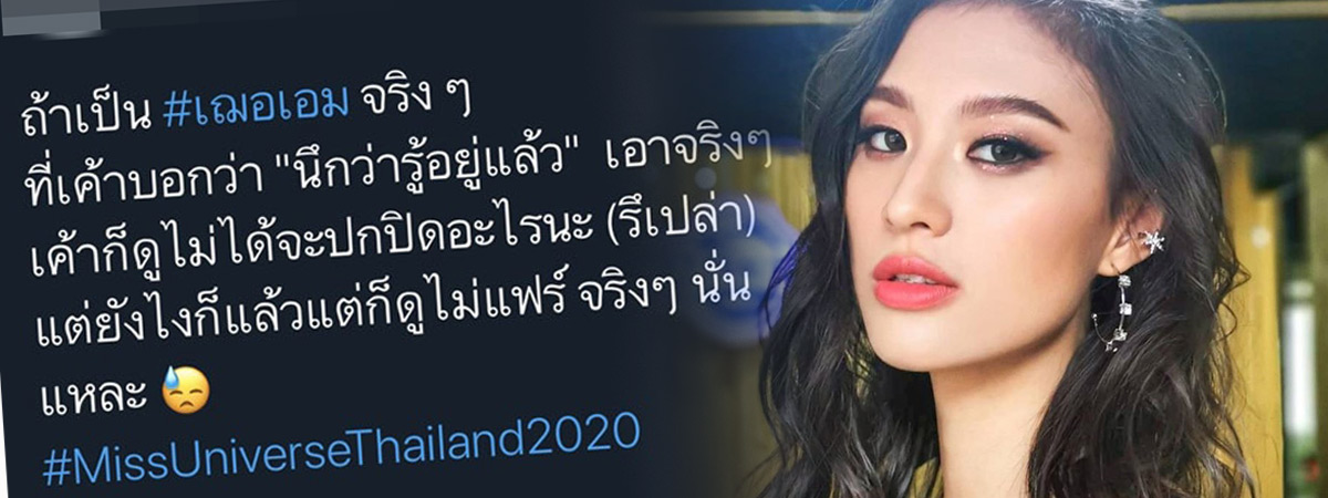 ประเด็นดราม่านางงาม กลายเป็นกระแสที่พูดถึงอย่างต่อเนื่อง ภายหลังจากทางทีมผู้บริหาร Miss Universe Thailand 2020 ออกโรงแฉเองว่า มีผู้จัดการนางงาม ฉายา #ผู้จัดการผีผลัก แฝงตัวเป็นทีมงามในกองประกวด และรู้ความลับภายในมาตลอด ในขณะเดียวกันก็ส่งเด็กของตัวเองเข้าประกวด และเป็นหนึ่งในตัวเต็งด้วย