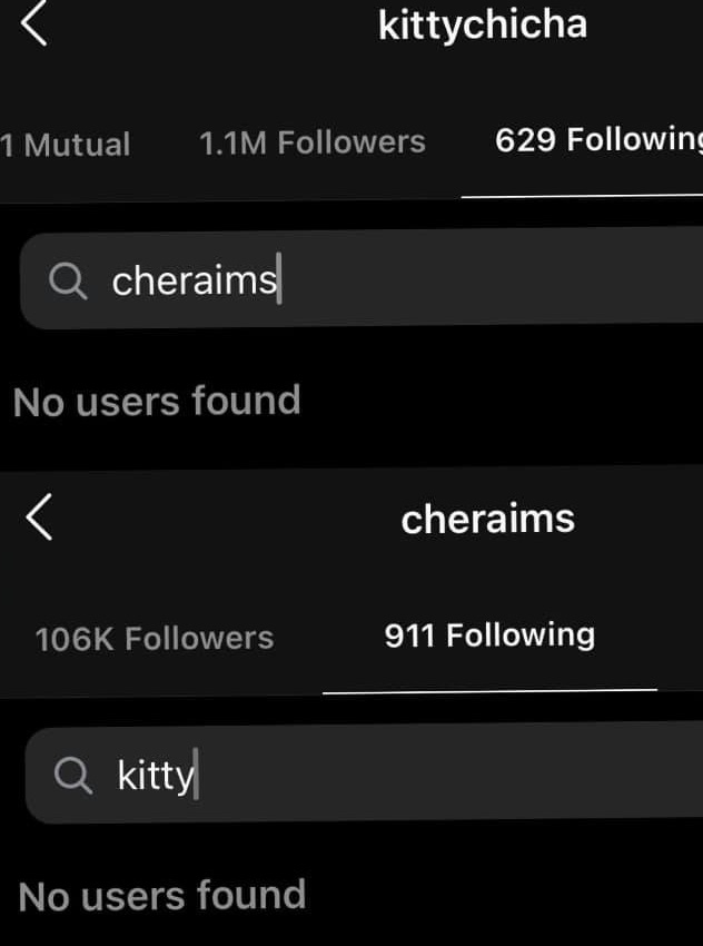 ทั้งนี้ ยังมีการขุดรูปเก่า ๆ ที่คิทตี้เคยโพสต์แนบชิดกับเฌอเอม พร้อมแคปชั่นที่เป็นอีโมจิ แมวกับงู ระบุว่า "หวงมาก ห้ามแย่ง" แถมตอนนี้ทั้งคู่ก็อันฟอลโลไอจีกันไปแล้ว เกิดอะไรขึ้นกับความสัมพันธ์ของทั้งคู่กันแน่ โดยจากอีโมจิที่เห็นทำให้ชาวเน็ตคาดเดากันไปว่า หรือจะเป็น คิทตี้ ที่เป็นคนปล่อยแชตหลุดต่าง ๆ จากคนสนิทใจออกมาฆ่ากันแบบนี้มีเหตุผลอะไร นอกจากนี้ยังมีคนให้ข้อมูลว่า เช็กตั้งแต่วันแรก พบว่าทั้งคู่อันฟอลโลไอจีกันตั้งแต่สมัครนางงามแล้ว